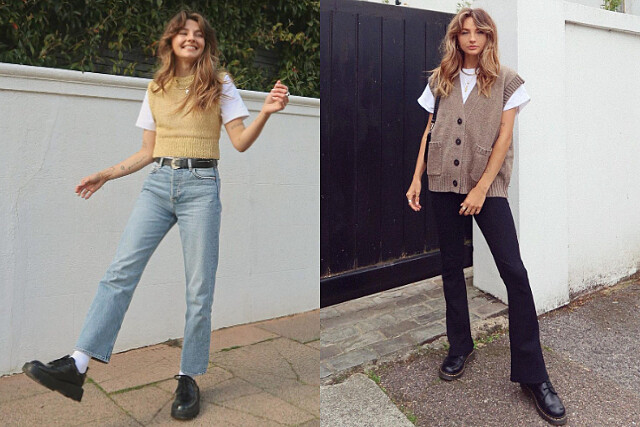 想讓簡單的穿搭有變化,可以外搭背心來增加層次感。像是近幾年流行的學院風,將素 T 配上短版背心,搭配牛仔褲,腳踩休閒皮鞋,你也可以成為校園美劇裡的 IT GIRL !或是搭配 V 領背心,簡單的搭配就能讓層次感瞬間激升!