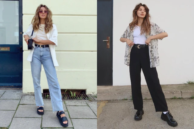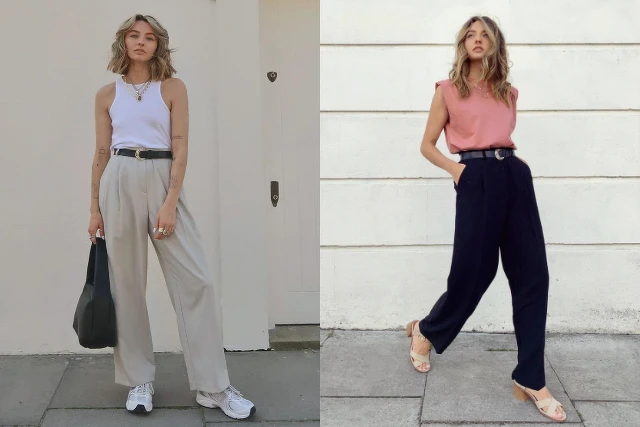 天氣熱的時候最適合穿背心出門,Chole 偏愛削肩和墊肩的款式。削肩可以修飾肩膀和手臂線條,也是一直以來必備的背心款式。墊肩背心也可以修飾手臂的贅肉,讓你立馬有直角肩,看上去更加幹練、俐落。下身可以配上休閒的牛仔褲,或是像 Chole 搭配西裝褲,絕對是職場小資女的必備穿搭!