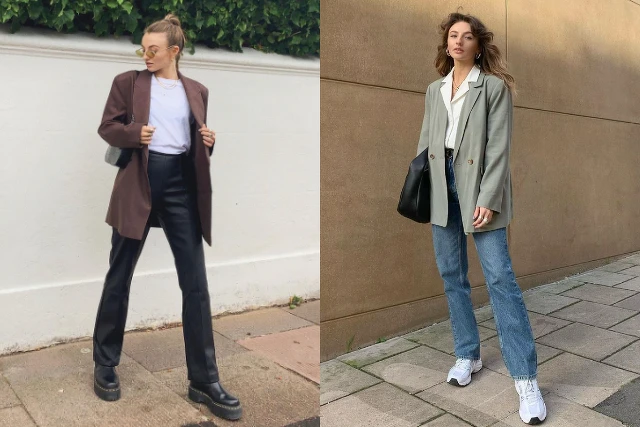 想要有 Smart Casual 的穿搭,可以將西裝外套進行混搭,Chole 配上今年十分流行的皮褲,營造霸氣、幹練的穿搭;也可以配上牛仔褲,會多些休閒氣息,也不會讓人覺得太隨性。