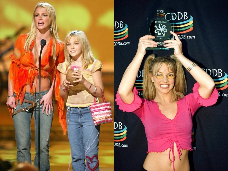 Britney Spears當年偏好的上衣,除了要短版的剪裁,面料上則常會選擇帶有金屬光感的面料,不論是金屬漆皮、亮片縫製或是水鑽串起的上衣,自帶鎂光燈聚焦效果。