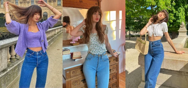 Dolorès 很喜歡穿著牛仔,在她的版面上一半是牛仔褲穿搭,會發現她很喜歡利用各式不同的短版上衣與牛仔做搭配,無論是搭配小印花或是粗面針織短上衣都很適合,比例因為上短下長,視覺上雙腿直接被無限延伸,打造超級長腿!而且丹寧無論搭配何種顏色的上衣都無違和感的,除了百搭的白色,像是今年很流行的淡紫羅藍色也很適切。而不同深淺的單寧刷色也會帶出不同感覺,像淺色一定就是散發無限活力、朝氣,基本上是零出錯的「約會好感女孩色」,較深的就會自帶些許復古味。