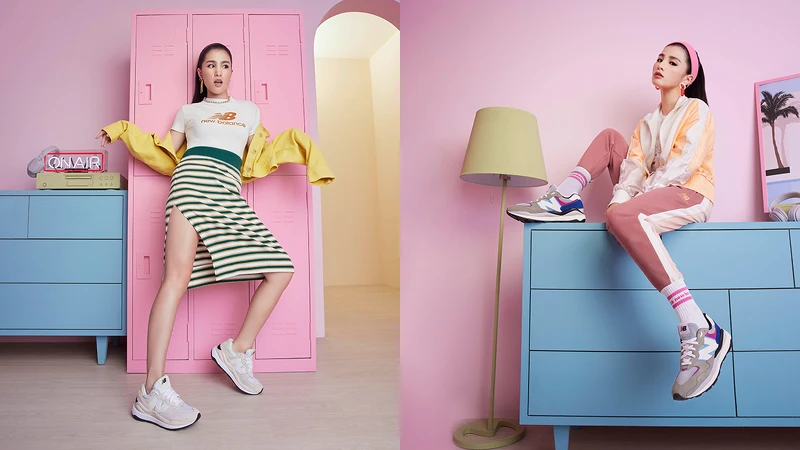 視覺衝擊與潮流吸睛度都較為強烈的NB 57/40 ,放大的N字Logo、色塊分割設計與配色前衛又活潑,最近已經成為潮流圈關注高人氣鞋款,江靜自己也很喜歡這種從經典作品中抽取關鍵元素注入新創意的設計細節,無論是粉嫩清爽的討喜配色或是霓虹螢光彩度超高的酷炫配色,都很適合喜歡打造獨樹一格魅力的時髦女生們。