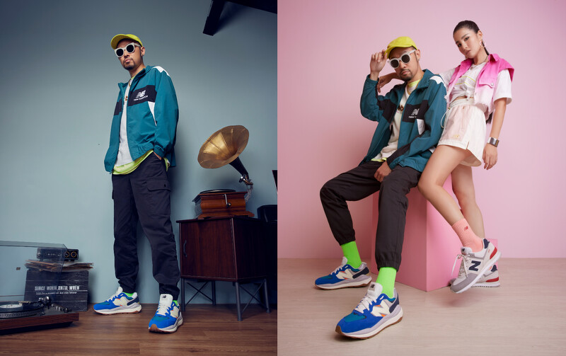 TURN UP!最強嘻哈師兄妹檔—熱狗&江靜,這次腳踩NB 574&57/40放膽玩色,演繹經典跨越世代的獨有SWAG態度!