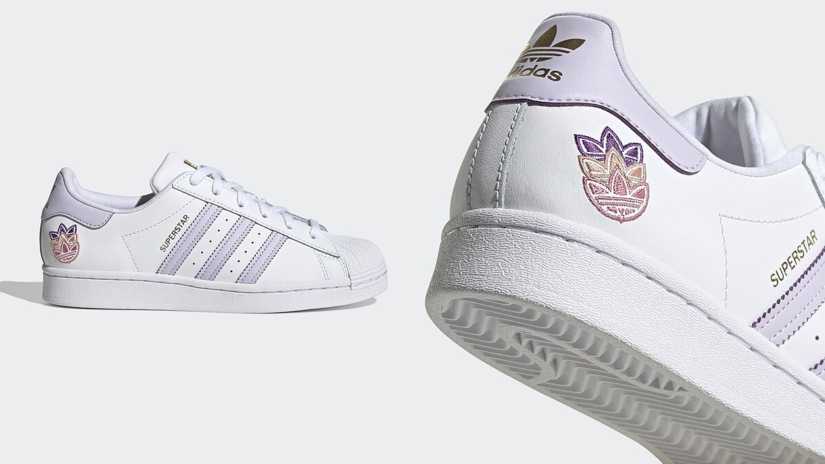 不論男女都愛穿adidas Originals經典球鞋Superstar,簡約又百搭的特點,穩佔品牌熱銷球鞋的寶座,本季adidas Originals為三斜線標誌換上粉嫩丁香紫,並於鞋後跟處加上3種不同色系的三葉標刺繡,偏愛紫色系的女孩絕不能錯過。
