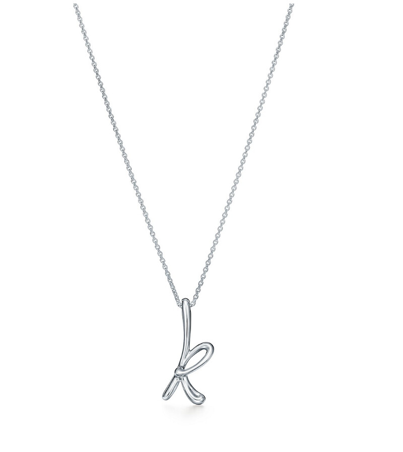 Elsa Peretti獨特設計字母墜鍊,純銀小款鍊墜,搭配16吋項鍊,售價店洽。