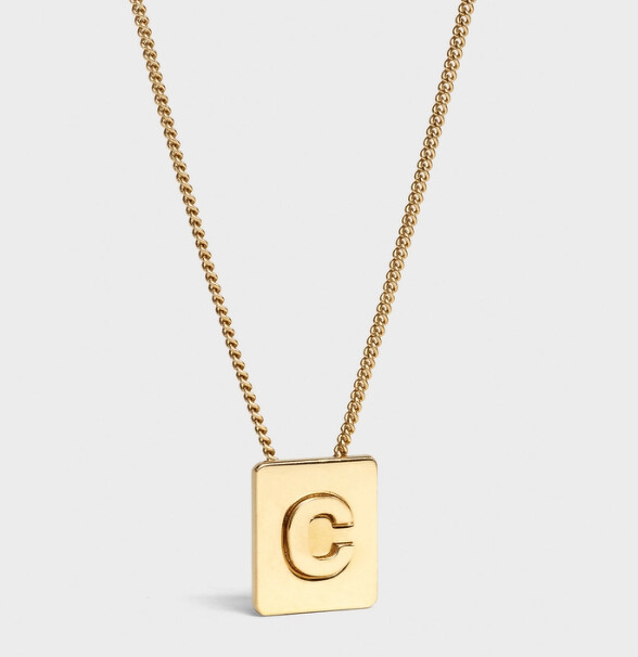 CELINE金色飾面黃銅項鍊,由細鍊與英文字母吊墜組成,售價新台幣NT15,000 (另有推出十二星座圖騰吊墜項鍊)