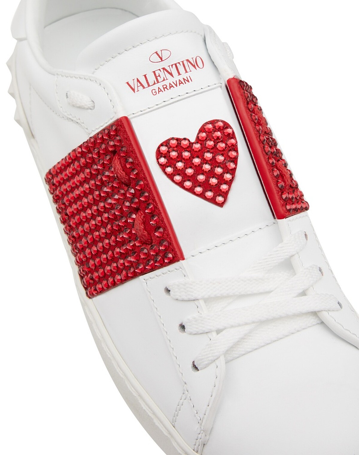 直接明瞭的將象徵愛情的紅色、愛心圖案,放上男裝、女裝、Valentino Garavani包袋以及鞋履系列,七夕情人節限定系列推出2雙小白鞋,其中經典鞋款One Stud七夕限定系列乍看之下與一般鞋款並無不同,特別的是Valentino在鞋後跟加入愛心圖案,浪漫指數絕對破表。