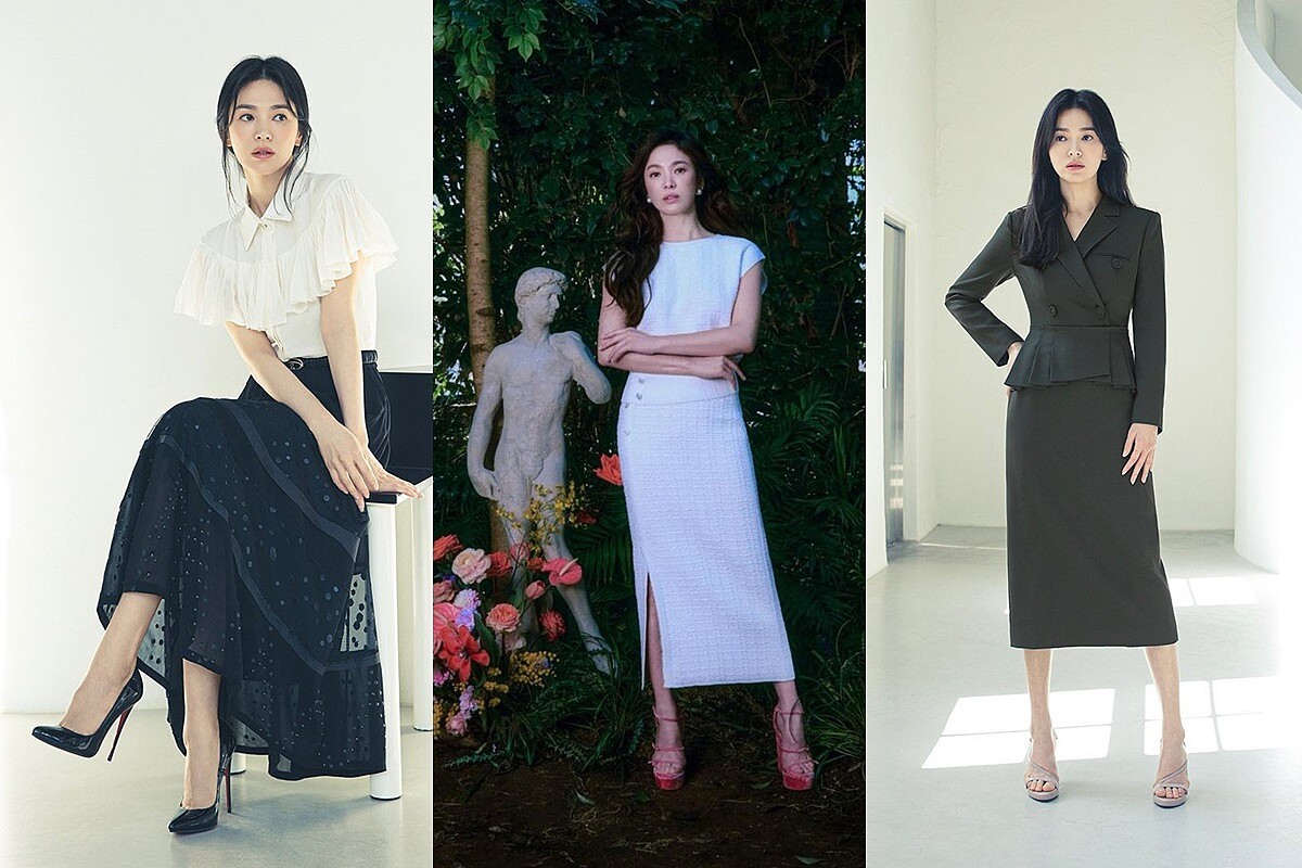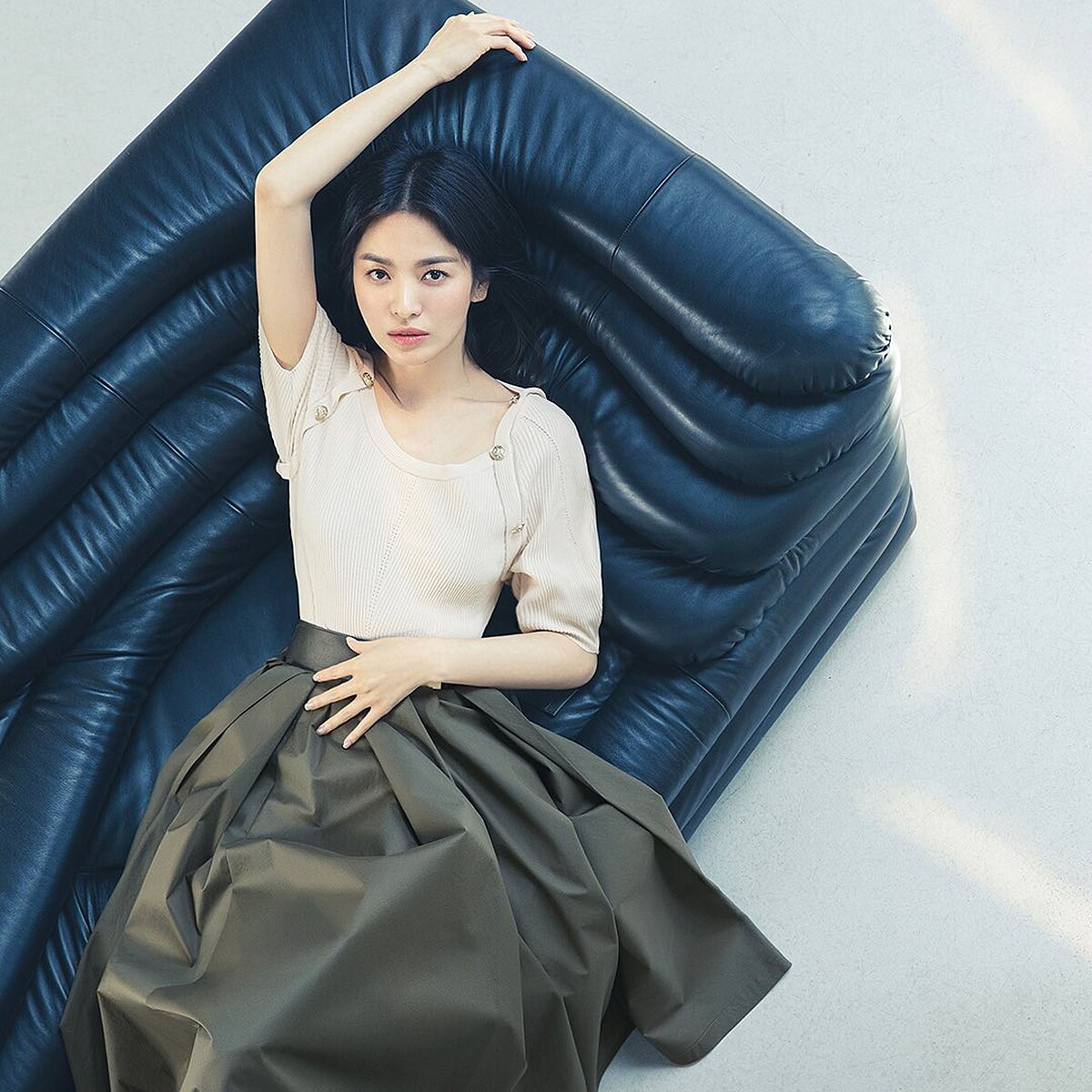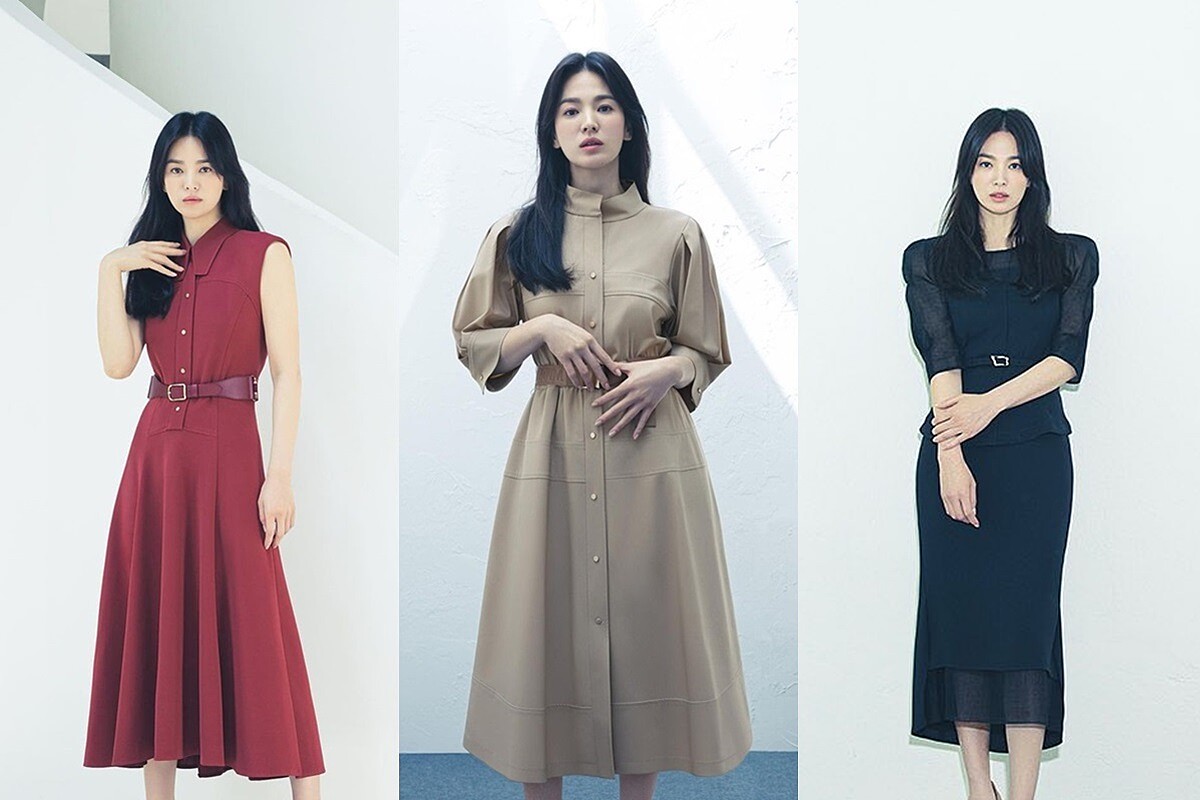 成功選對洋裝、裙子的長度後,宋慧喬在意的地方還有一處,就是不論是洋裝或裙子,盡量不要挑選合身的面料,仔細看照片就能發現,女神喜愛的款飾大多是傘狀的長洋裝,就連半身裙也都是A Line的款式,這類型的裙子自帶女神氣息,更重要的是還有顯瘦效果。