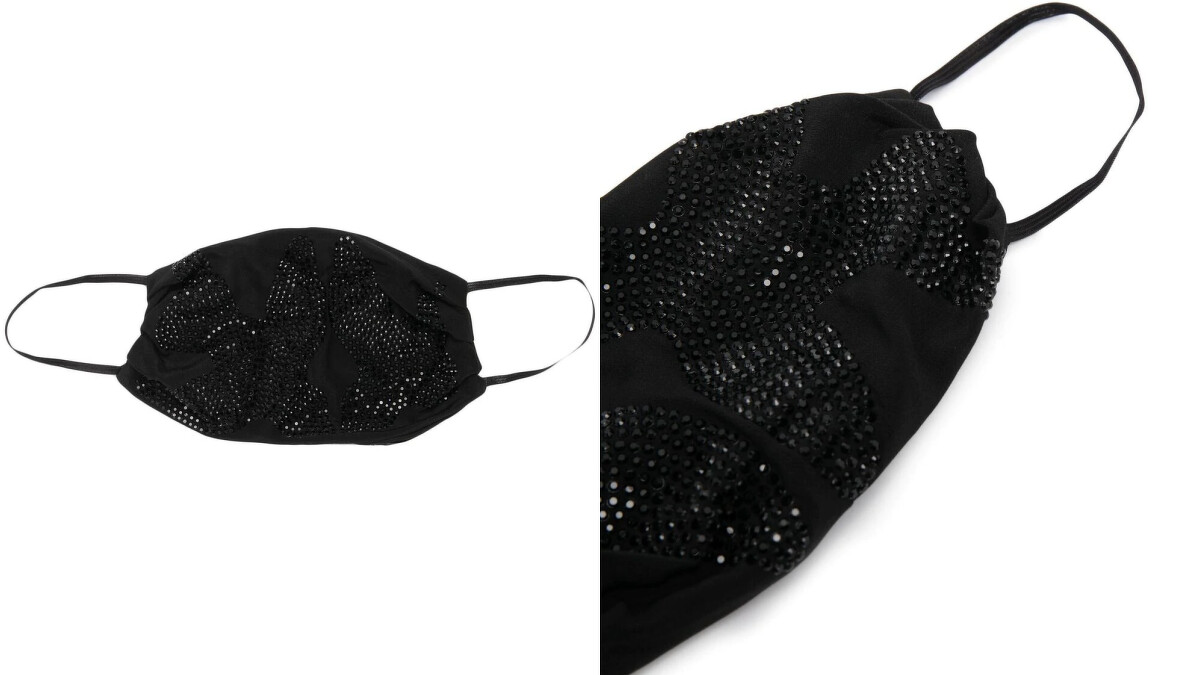 如果不好意思配戴以上兩款高閃的水鑽口罩,則可以參考這一款帶有細細的閃光的黑色水鑽口罩,低調之餘卻又不失細節。