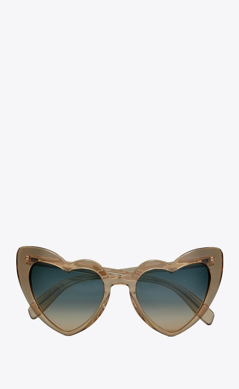 如果還是不太敢嘗試以上兩種過於炫活的款式,則可以參考YSL這一款素色鏡框的太陽眼鏡。將愛心結合了一點貓眼的輪廓,呈現出另一種魅惑的時髦感。