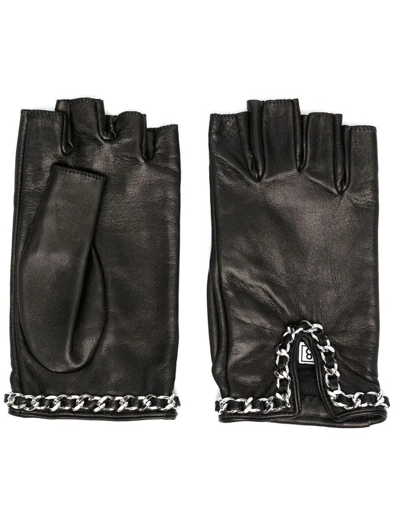 以皮革服飾為主的Manokhi,有推出這一款黑色皮革手套,在手腕的部分縫上皮革鍊條細節,有著細緻的精品感。