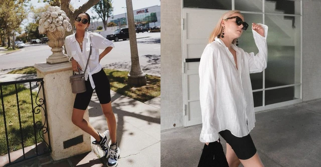 白襯衫在以往的印象是「正式、嚴肅」,但隨著時間、潮流,它也變成了不可或缺的時尚單品之一。運動風的瑜珈穿搭再隨意搭上一件襯衫當作外襯,就多了一份簡單率性的感覺,無論直接單配白襯衫或是有個性的紮、綁起來,都是很時尚的穿法。(圖片來源:1 2)