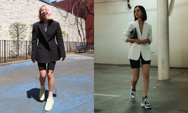 瑜珈褲跟各款外套也是靈魂伴侶,飛行外套、牛仔外套、運動棉外套等等,每種搭出來的感覺都不同。除此之外,若是穿著瑜珈褲讓駱駝蹄型狀顯露會覺得尷尬、害羞的話,可以選擇長度大約落在屁股的外套,就能夠穿得安心又好看!搭編非常推薦瑜珈褲搭配西裝外套,不但俐落、時尚還帶點微性感!(圖片來源:12)