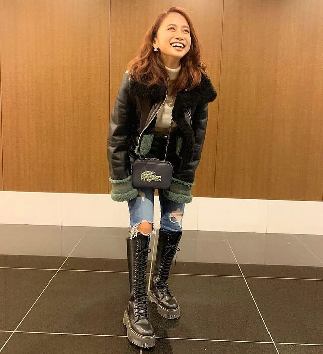 誰說小隻女就不能穿靴子,其實只要搭配得宜,誰說不可以!這雙厚底的長筒靴很常入鏡在莉笑子的 IG 裡,在搭配上,都會用貼身的牛仔褲配上短版上衣,或是直接一件小洋裝去做造型,這樣才不會頭重腳中的感覺,將重點選一著重,就不會有整個人被衣服、鞋子,吃掉的囧境。