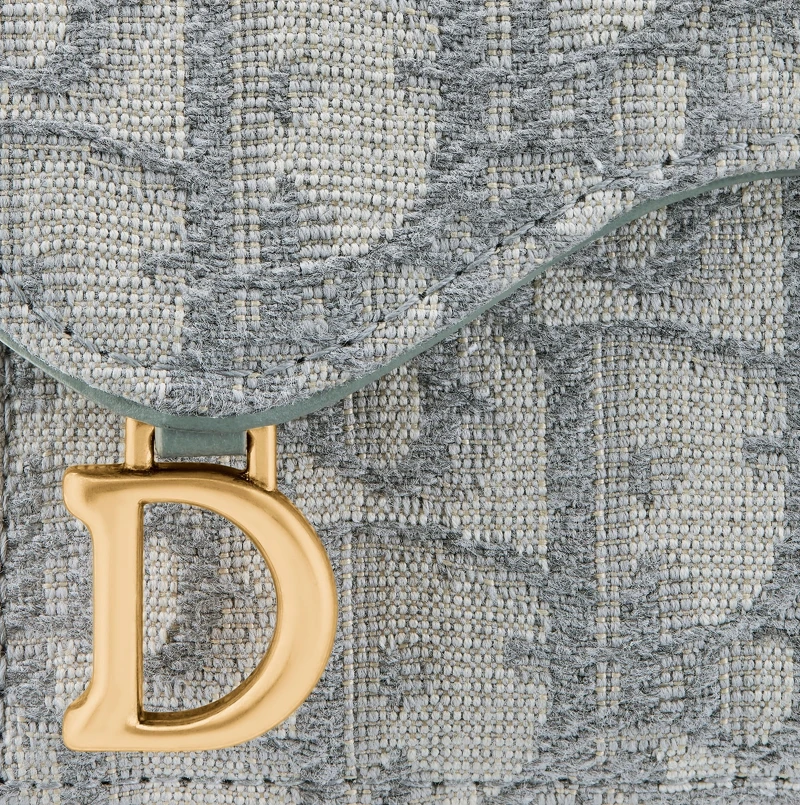 Dior最熱賣的短夾Saddle,秋冬也換成特里亞農灰Oblique緹花面料,搭配復古金色色調金屬「D」形馬蹬,設有可以放置鈔票、卡片及零錢的夾層。