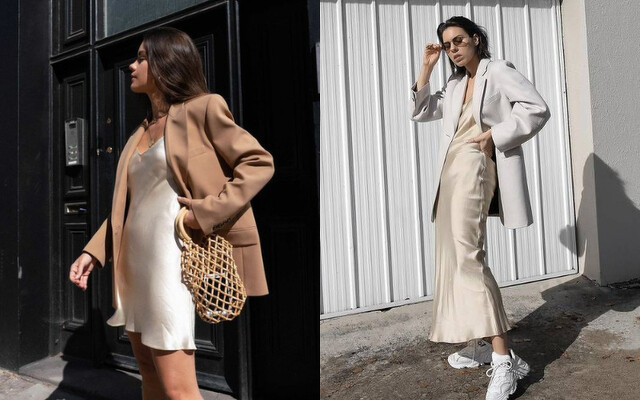 歐美博主都愛穿的「緞面裙」搭配球鞋、西裝外套 ⋯ 休閒單品,穿出簡約隨性的高級感氛圍