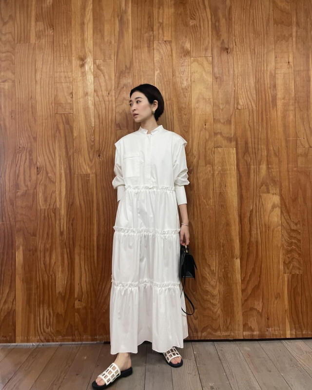 比起短褲及短裙,Mari Nakamura 的日常穿搭裡經常能看見她身穿低彩度的長裙,尤其是身為品牌設計師,她偏愛俐落的服裝線條與輪廓,打造高級內斂的舒適質感,在她身上的顏色也通常不會超過三種,尤其是擅長以大地色系點綴黑白灰這三個純色系穿搭造型,在俐落帥氣的同時也能帶點溫柔可人的柔美味道。(圖片來源)