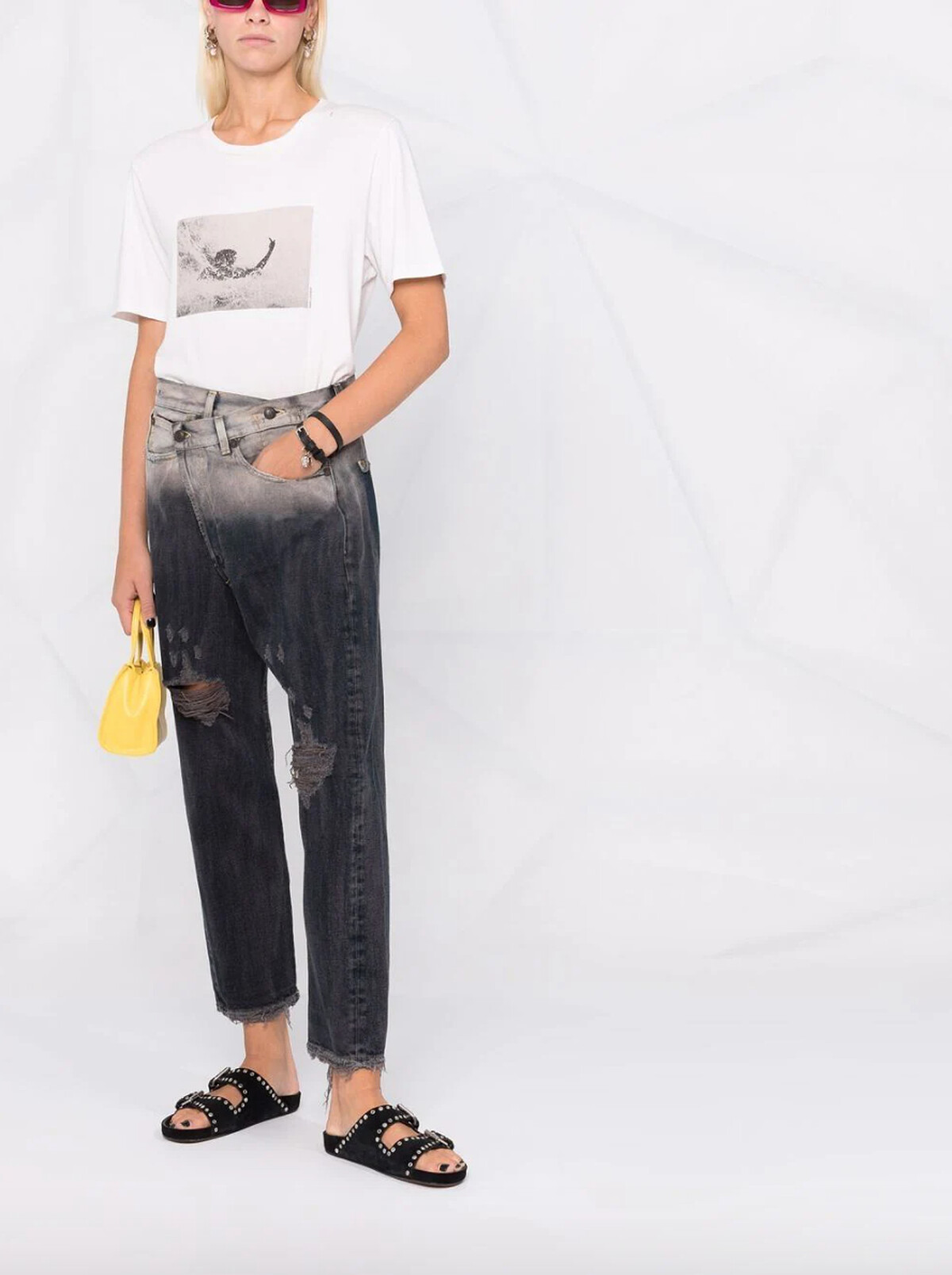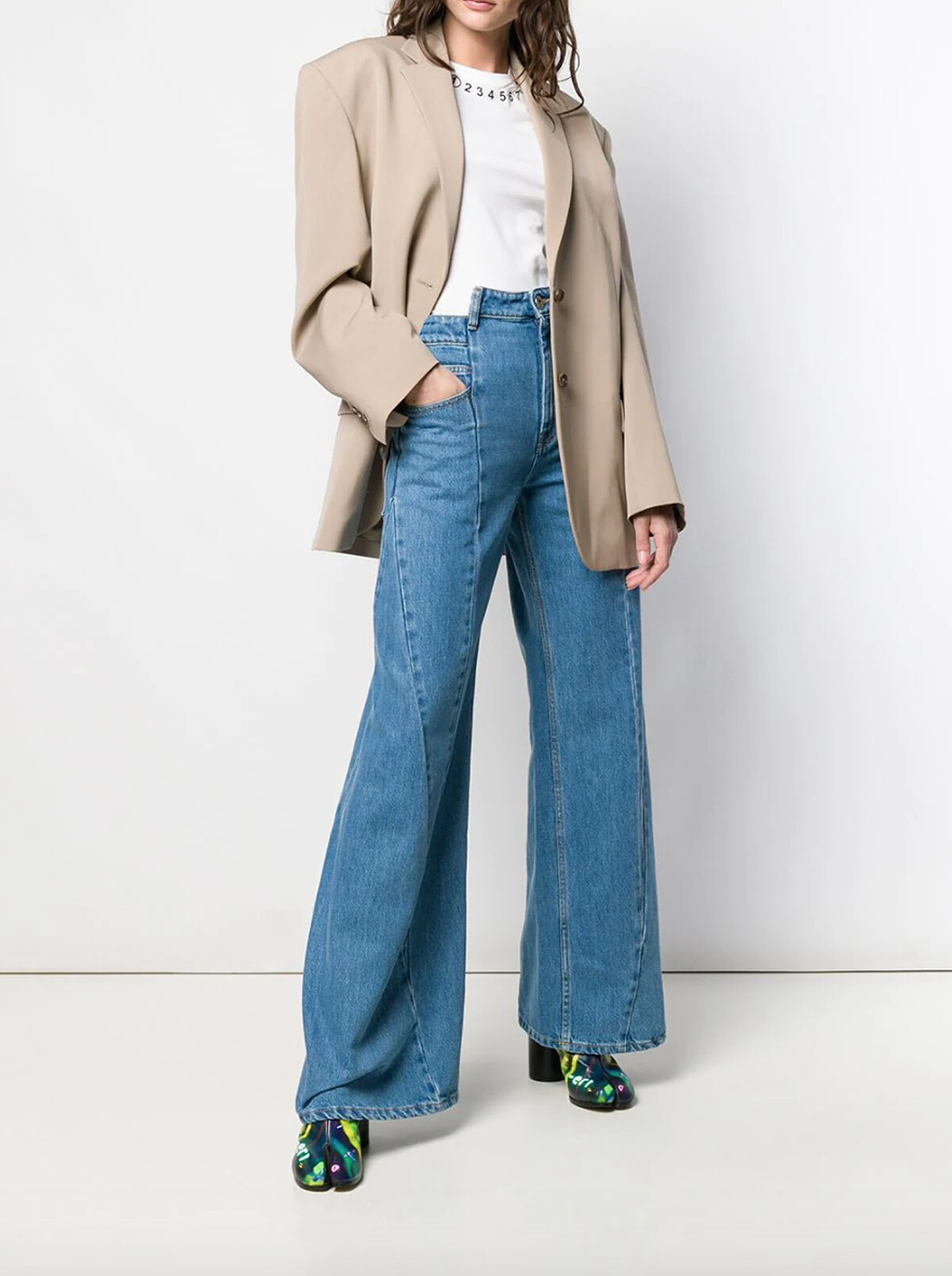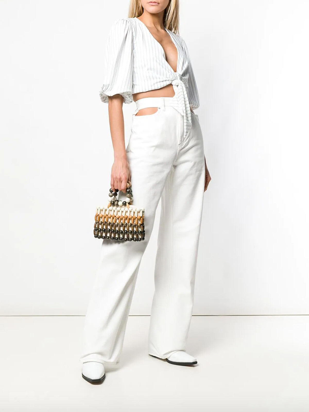 Maison Margiela白色挖洞高腰闊腿牛仔褲