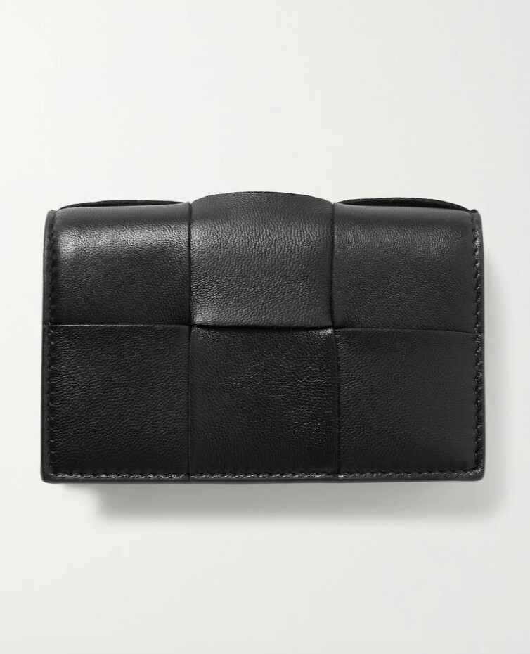 Casette Intrecciato 黑色小羊皮編織卡夹
