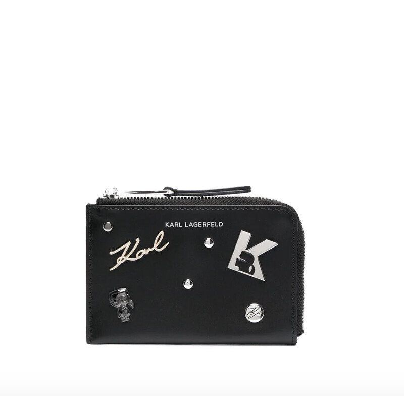 K/Karl 黑色皮革釘釦拉鍊卡夾