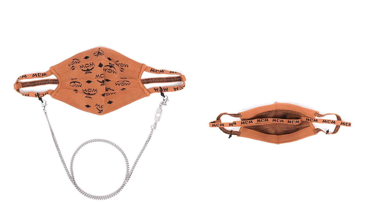 MCM針織布料製作而成的Logo口罩,提升口罩的舒適性(也很保暖),同時還有一條可圈在頭部的織帶增加口罩的穩定度,很適合寒冷天氣穿戴。