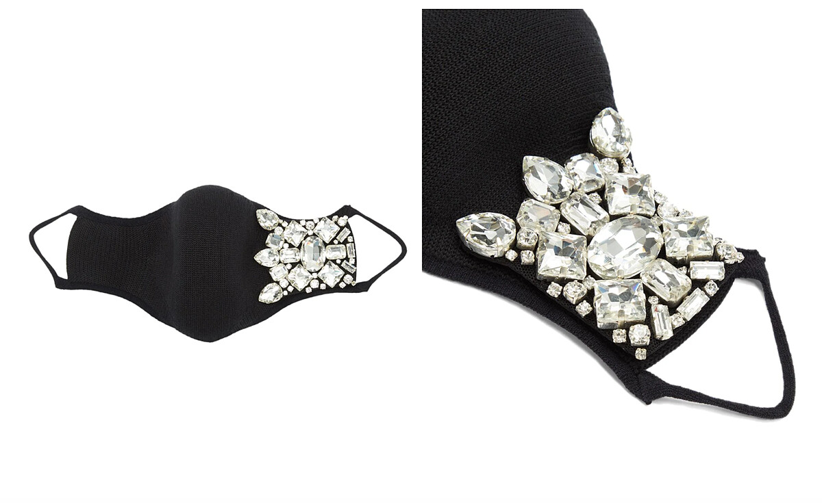 看似低調的黑色口罩以張狂的大顆鑽石點綴,非常符合時尚人喜歡內斂又愛奢華的矛盾性格,酷斃了!