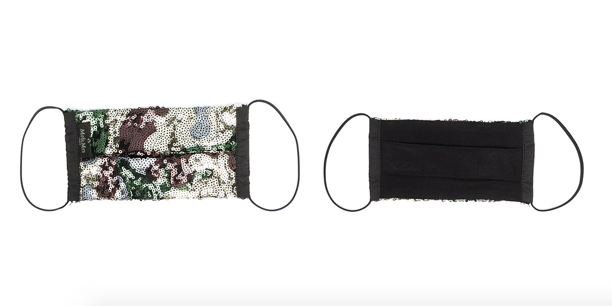 鑲滿亮片的口罩在遠方一百米就能招來路人目光,迷彩的圖樣讓外型更有時尚潮味。