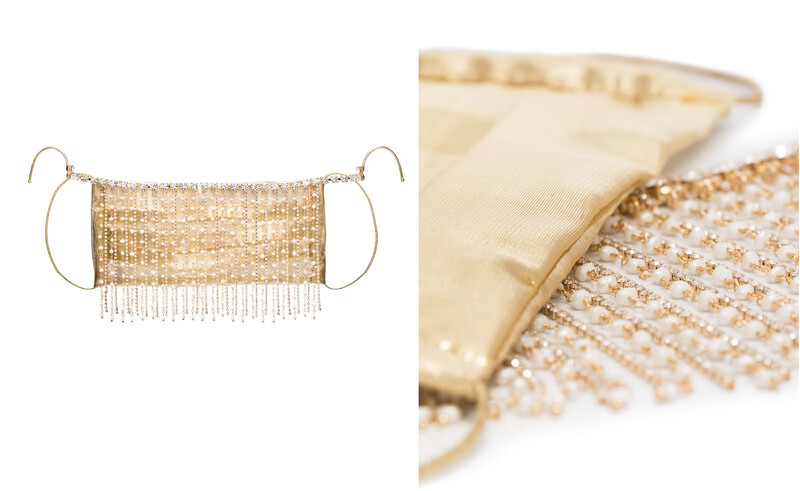 以金色系珠飾妝點的口罩帶有濃厚的異國風情,想在社群上留下難忘的倩影,不妨趁年末派對玩玩不同的造型風格,開心一下!