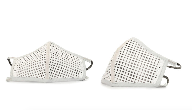 這款簡約設計的口罩表層是雷射格狀切割的皮革,裡層是透氣的亞麻布,讓呼吸不受阻礙,又保有時尚摩登的簡約美感。