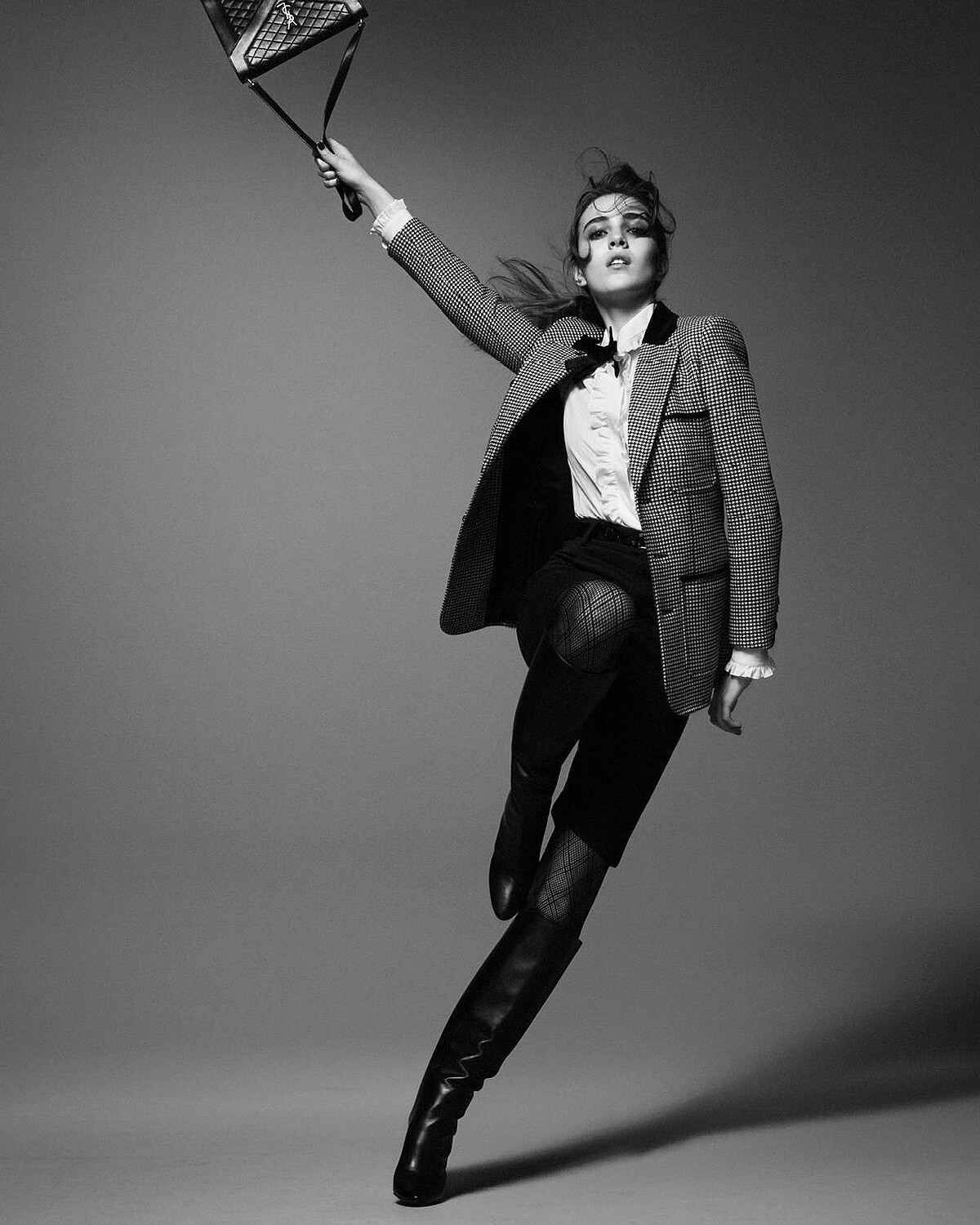 喜歡性感風的你,不妨向Saint Laurent全球品牌大使Blackpink Rosé取經,選擇波卡圓點的領結襯衫,下半身搭配極短黑色西裝褲,外頭罩上一件黑色長版西裝外套,又帥又辣的穿搭風格,成為眾人目光焦點絕對不難。