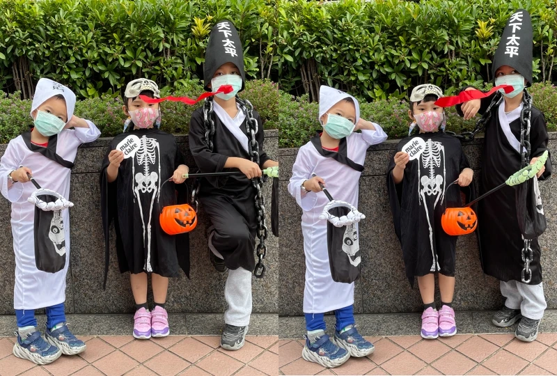 首先登場的便是今年人氣紅不讓的《魷魚遊戲》!相比去年滿街跑的鬼滅角色,今年萬聖節反而以《魷魚遊戲》中的靈魂人物,如木頭人娃娃以及身著運動服的參賽者為居多,雖說劇情內容對小朋友來說不大合適,但依然可見魅力指數連大小朋友都敵擋不住。