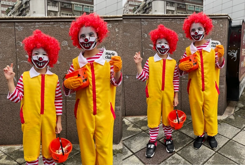 不管到哪個年紀依然是大小朋友喜愛的買當勞叔叔,這回在兄弟倆的精心打扮下成了活潑好動的吸睛雙人組,尤其那精心用來搭配的造型口罩可說是完美地完整了整體裝扮。