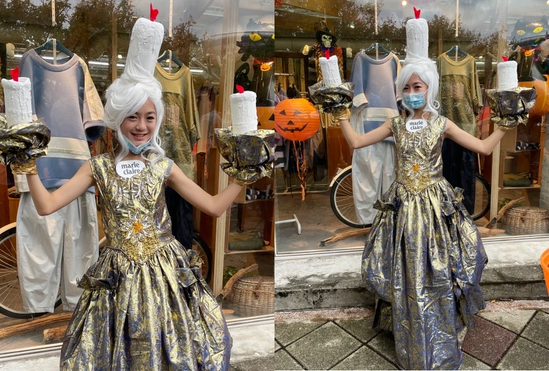 又一個迪士尼經典動畫角色啦,然而女孩選擇的並非《美女與野獸》中的公主貝兒,而是討人喜愛的燭台盧米亞,配合上招牌動作拍照起來可說是氣勢十足。