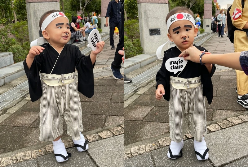 這身小小武士的裝扮想必早已萌翻許多人!雖然媽媽說去年也是以這身裝扮亮相,但弟弟可愛的模樣配上無辜的眉型讓人不拍都不行。
