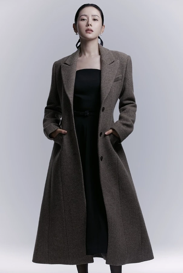 冬季必備的禦寒單品,那可不能不提到長版大衣,如果上衣、長褲已經選擇暗色調的單品,那外頭的長版大衣就可以挑選色彩較輕盈的款式,像孫藝珍身上的米灰色或是淺棕色,可以幫助整體造型不會顯得太過厚重。