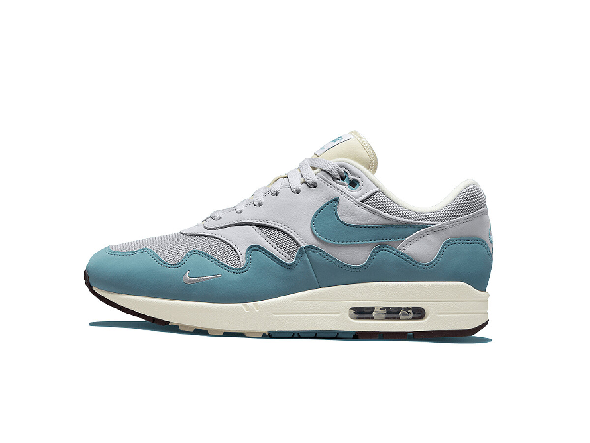 再來是下半年強勢登場的 Air Max 1 Patta Noise Aqua 也進榜,可視化氣墊搭配獨特的低飽和藍色系,搭配秋冬造型能呈現視覺的和諧感,冷色系展現屬於冬日的摩登質感,又或是與暖色系冬裝混搭也能展現視覺新意。