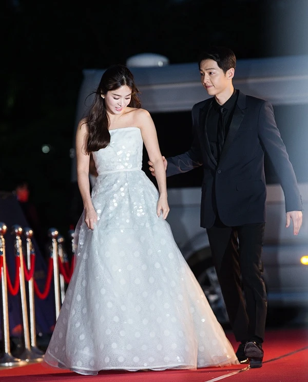 韓劇《太陽的後裔》紅遍亞洲,劇中男女主角宋仲基、宋慧喬受邀出席第52屆百想藝術大賞,喬妹以水藍色亮片平口禮服登場紅毯,微露鎖骨的平口設計,將喬妹白皙肌膚展露無遺,既夢幻又性感。