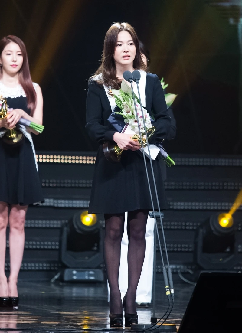 憑著《太陽的後裔》獲得總統表彰賞的宋慧喬,選擇黑色西裝領洋裝出席頒獎典禮,隆重又不失優雅的穿搭,贏得許多粉絲的好評。