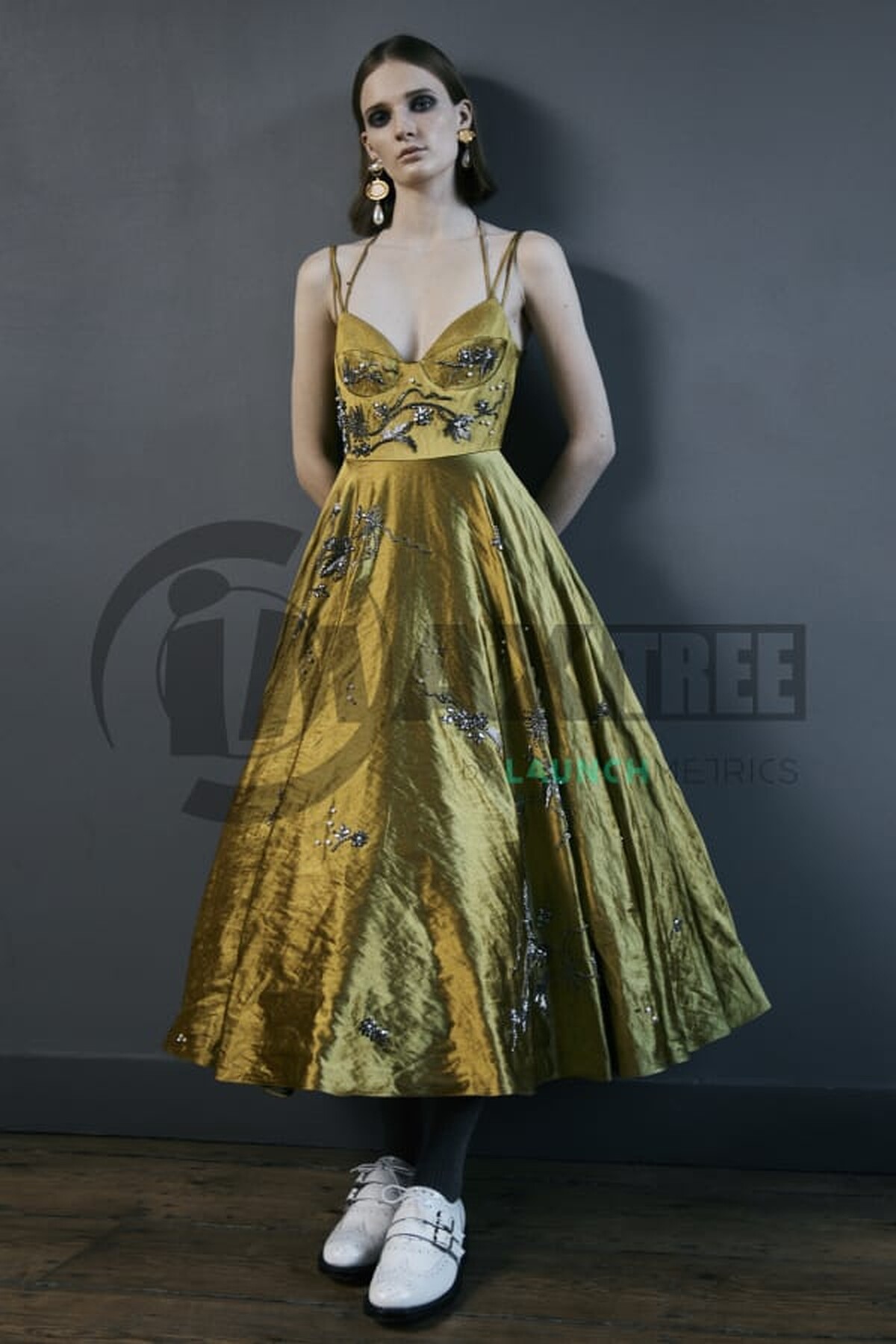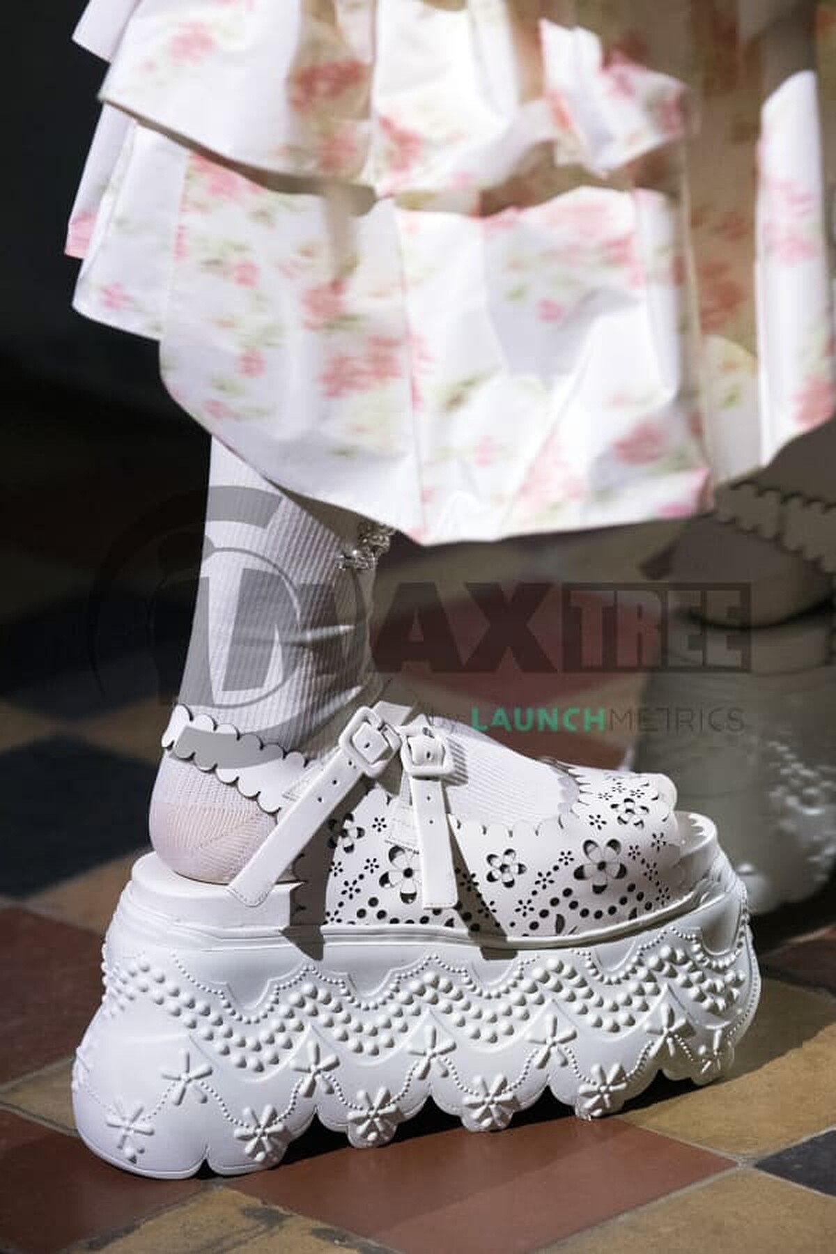 在 Erdem 2022 早秋系列中,有不少身著長洋裝腳踩白色瑪莉珍鞋的造型,無論是單色還是印花洋裝,搭配上白色的瑪莉珍鞋皆能展現女人的優雅氣質。