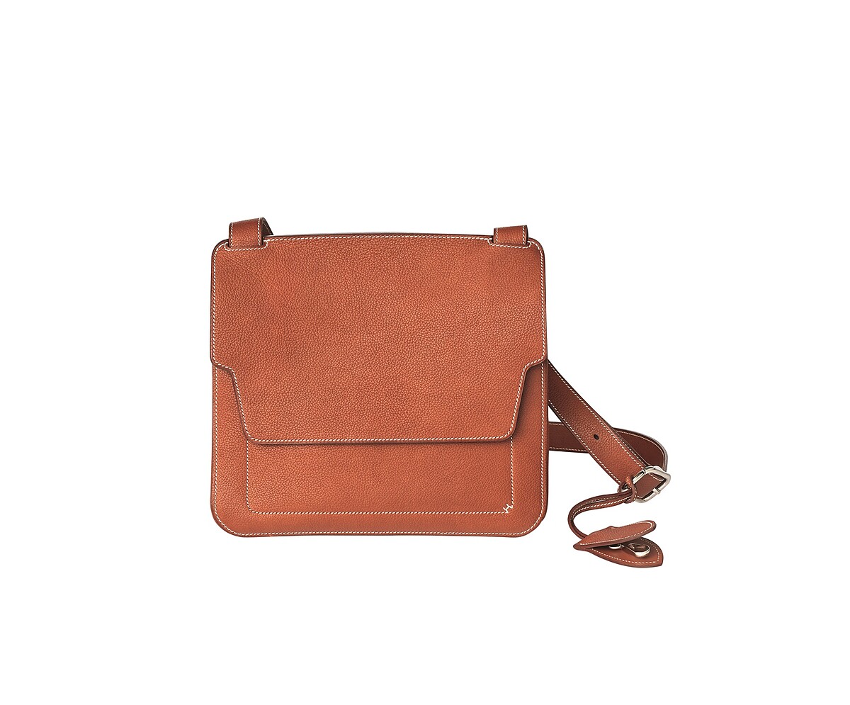 選用Barénia Faubourg小牛皮製作的Mali-Selle肩背包,處處展現愛馬仕的馬術精神,包括拋光皮革、翻蓋設計及壓線縫飾等,皆從馬鞍襟翼而來,特別在包身左側下方手縫上H字母,突顯Hermès引以為傲的皮革工藝。
