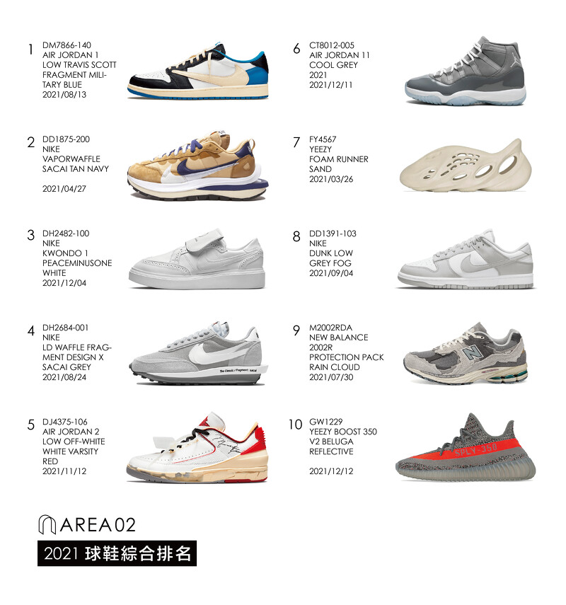 球鞋迷必留意!AREA 02 公佈 2021 綜合鞋款榜單關鍵字,灰階色調、聯名系列、NFT、經典鞋款…都入榜