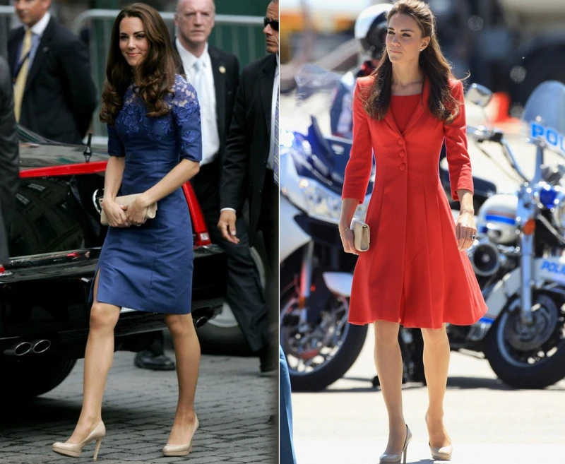 鍾愛簡約款式的凱特王妃,時常選擇裸色的跟鞋,不論是搭配小碎花洋裝、西裝版型的洋裝,簡單卻有十足的貴族優雅氛圍。L.K. Bennett的跟鞋平均價為座落在200英鎊左右、約為NT$7,500上下。