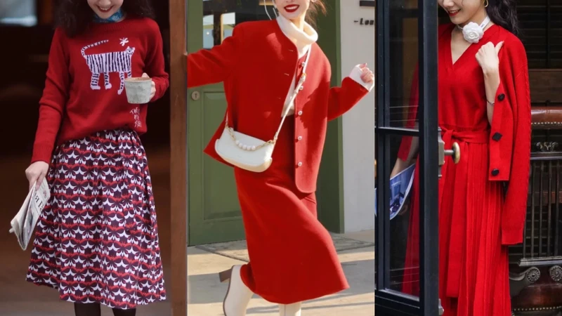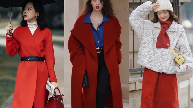 除夕這天家人團聚圍爐、守歲,一起迎來嶄新的農曆年,穿上顯眼的正紅色除了充滿喜氣外,也能襯托好氣色、顯膚白,復古的紅色套裝,內搭白色高領毛衣或是素色內搭,既顯氣質又充滿氛圍感,若是不敢穿著大面積正紅色單品,也可以選用印花圖騰做出變化。