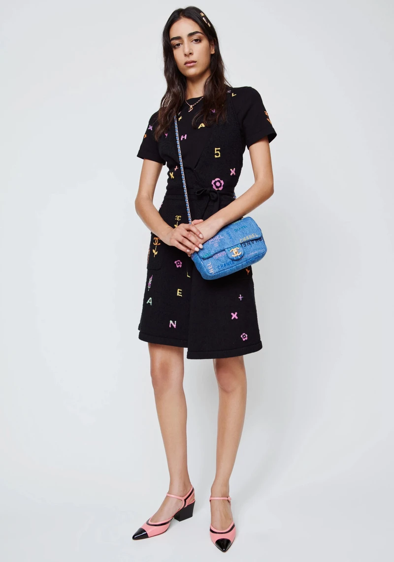 小香迷一定都要入手的口蓋包,在2022春夏系列換穿丹寧外衣,搭配香奈兒經典的繽紛CHANEL印花圖案,結合皮革穿鍊設計,還有最具辨識度的金屬雙C Logo。