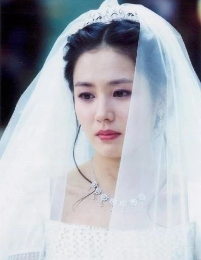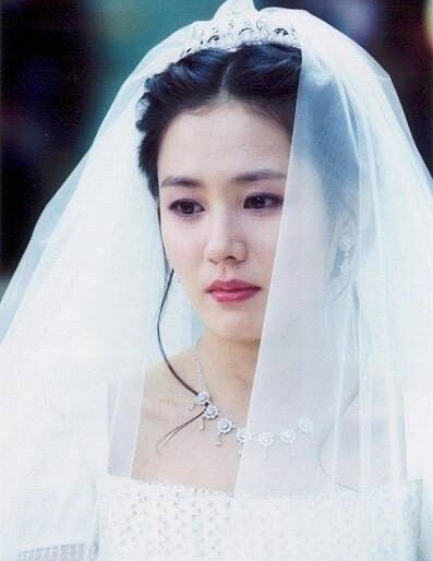 與宋承憲展開浪漫的愛情,是不少八年級生的童年回憶,劇中孫藝珍就穿著典雅的純白刺繡婚紗,搭配飄逸的頭紗,看得出當時的孫仙十分青澀。