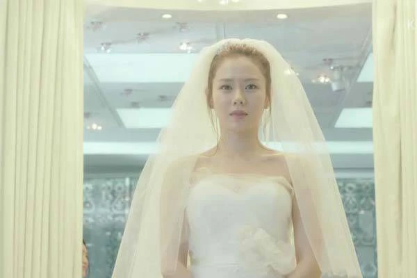 青澀的、成熟的、清純的孫藝珍都穿過了,因此,在電影《我的野蠻初戀》中,孫藝珍的婚紗則多了點奢華感,佈滿珠飾的白色,搭配珠寶皇冠、項鍊,孫仙不只仙還相當貴氣。