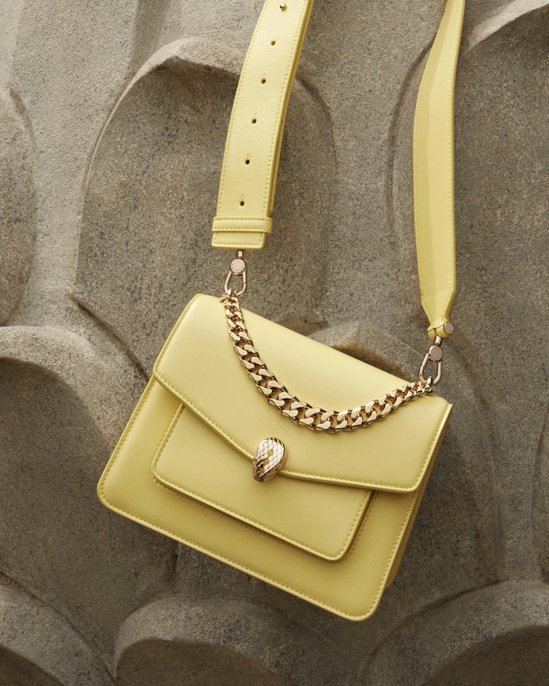 從品牌最著名的Serpenti蛇首,所延伸出的全新Serpenti Forever Maxi Chain小牛皮肩背包,運用Palmellato小牛皮打造而成,相較於品牌過往的Serpenti Forever系列,新款肩背包則多了份率性,外觀也更年輕,包身上的雙色粗鍊帶相當吸睛,附有可調式寬版背帶,亦能滿足各種穿搭風格。