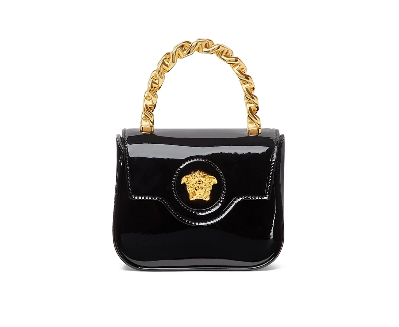 因為Bella Hadid和Gigi Hadid拍攝的形象廣告爆紅的La Medusa包,2022春夏迎來全新迷你尺寸,承襲Medusa的神秘魅力,La Medusa包正面綴以Versace 獨特的品牌標誌,包款上的獨特Versace鍊帶手提把,方便外出時手提攜帶,也可以搭配可拆式肩帶,作為斜背包使用,推出黑色、金色漆皮款,也有鮮橙黃色、DV藍色和藍綠色。