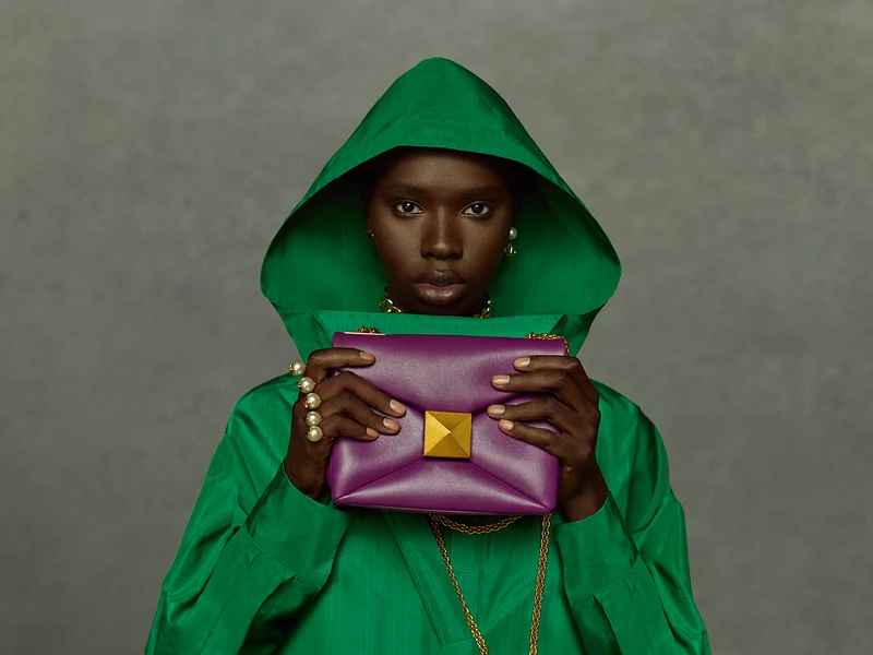 2022春夏新登場的Valentino Garavani One Stud,延續品牌經典的鉚釘元素,只是過往佈滿包身的小顆鉚釘,到了Valentino Garavani One Stud包上,變成單獨一顆的放大版鉚釘,且結合磁釦開合設計,整個手袋需花費25小時才能完成,其中鉚釘就佔了9小時,其餘16小時用於拼接和縫製,Valentino Garavani One Stud除了有金屬鍊帶款,還推出托特袋款式。