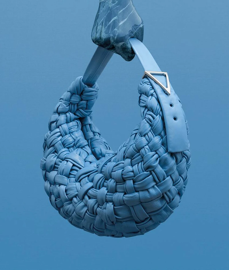接著輪到BV最具辨識度的POUCH雲朵包,2022春季在創意總監手中,賦予包款嶄新的樣貌,以獨特勾針的針織面料製作,毛茸茸如寵物般的蓬鬆外觀,搭配泡泡糖粉、蒲公英黃及天空藍等繽紛色系,當然也有經典不敗的巧克力棕,是日常穿搭的加分單品。